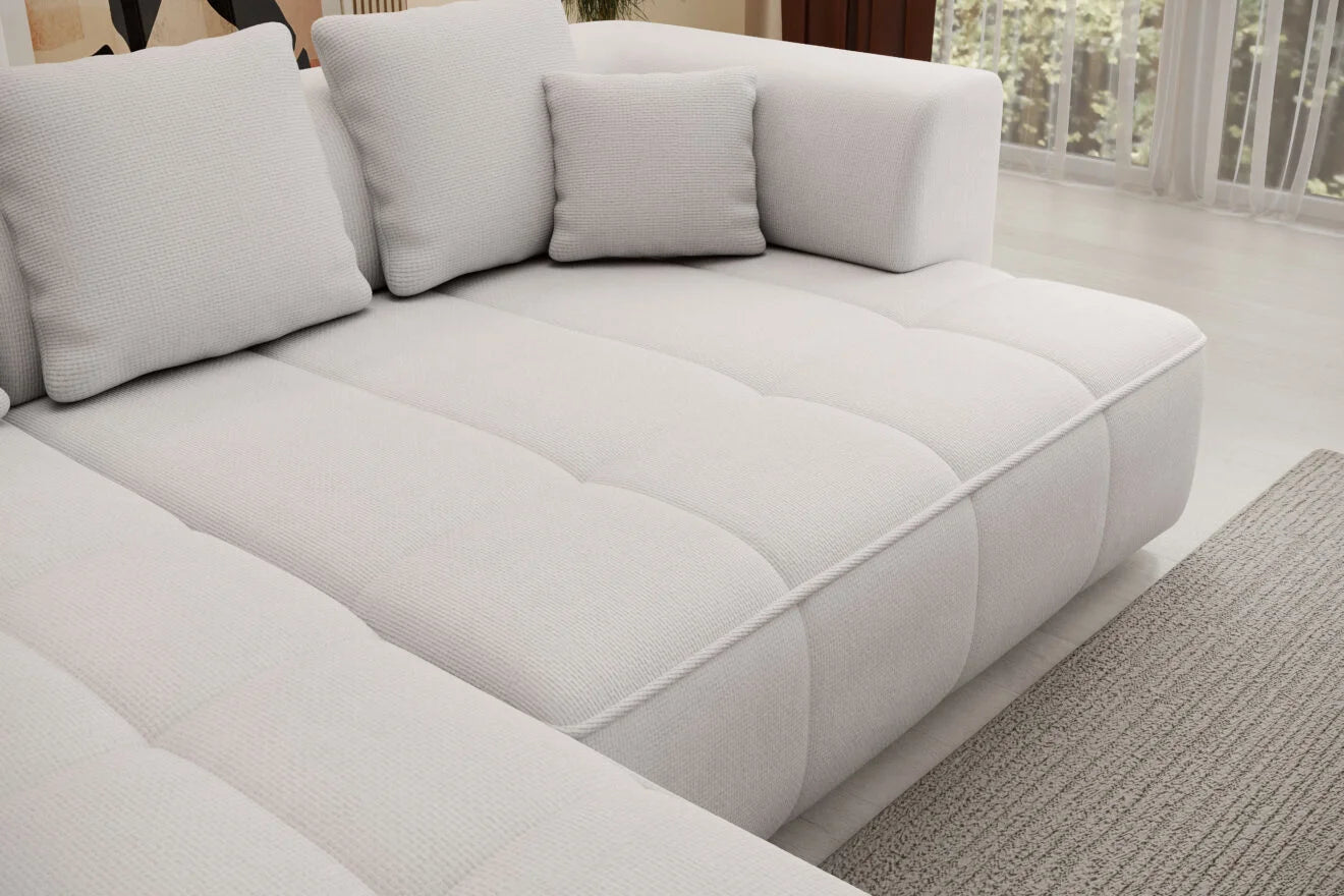 • Design "Cloud" Moderne : Son aspect matelassé et robuste donne une impression de stabilité et de luxe discret, parfait pour un intérieur chic et décontracté.