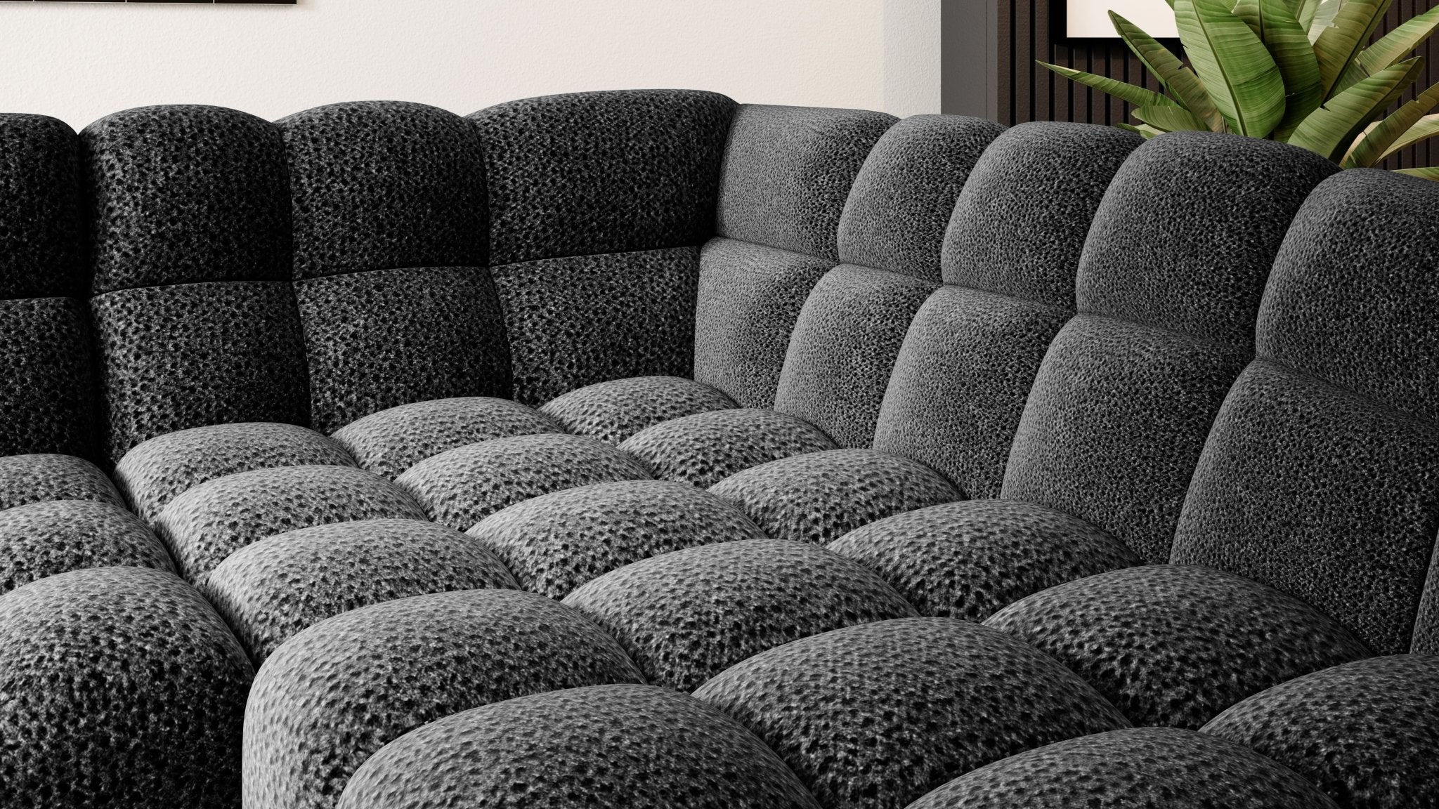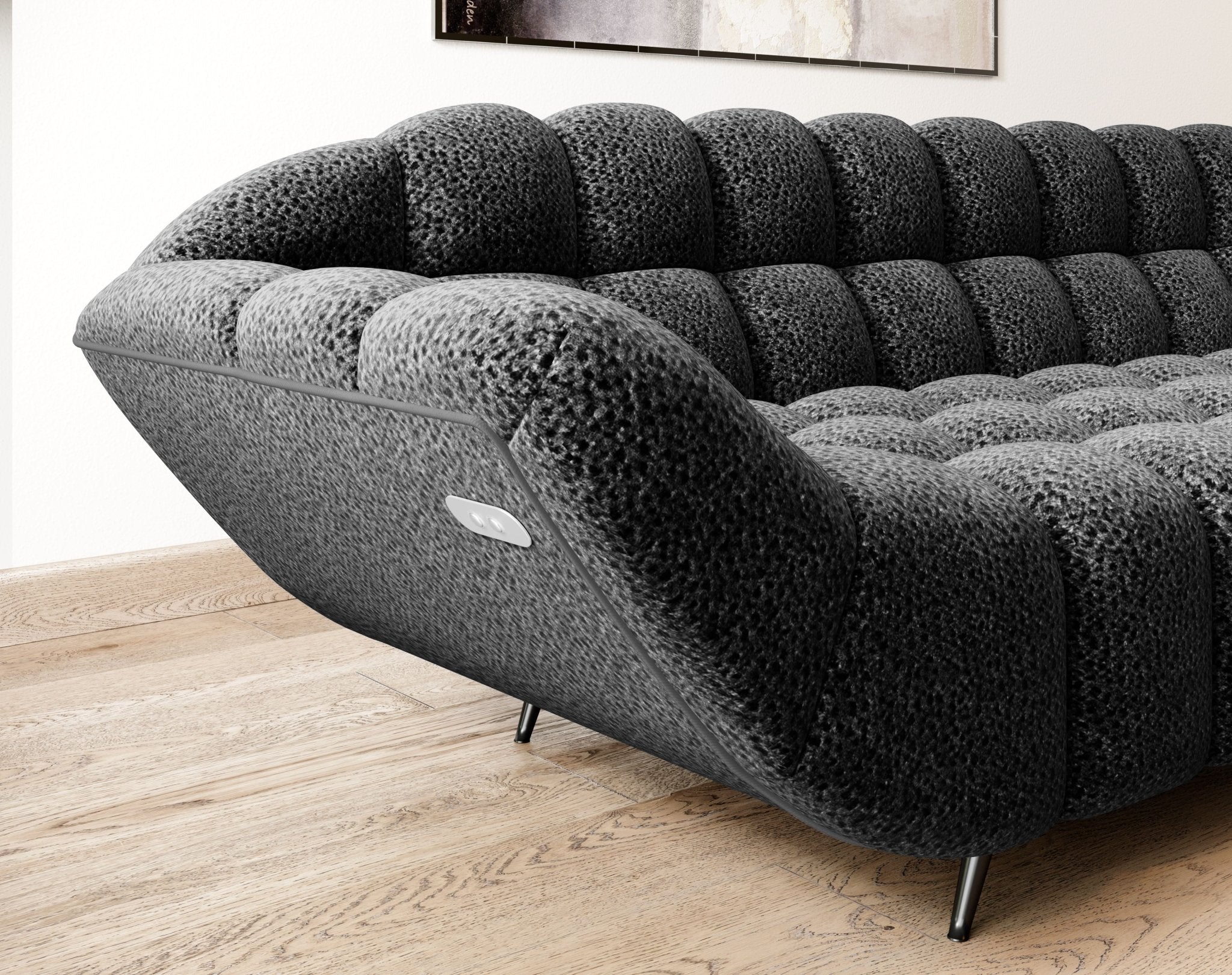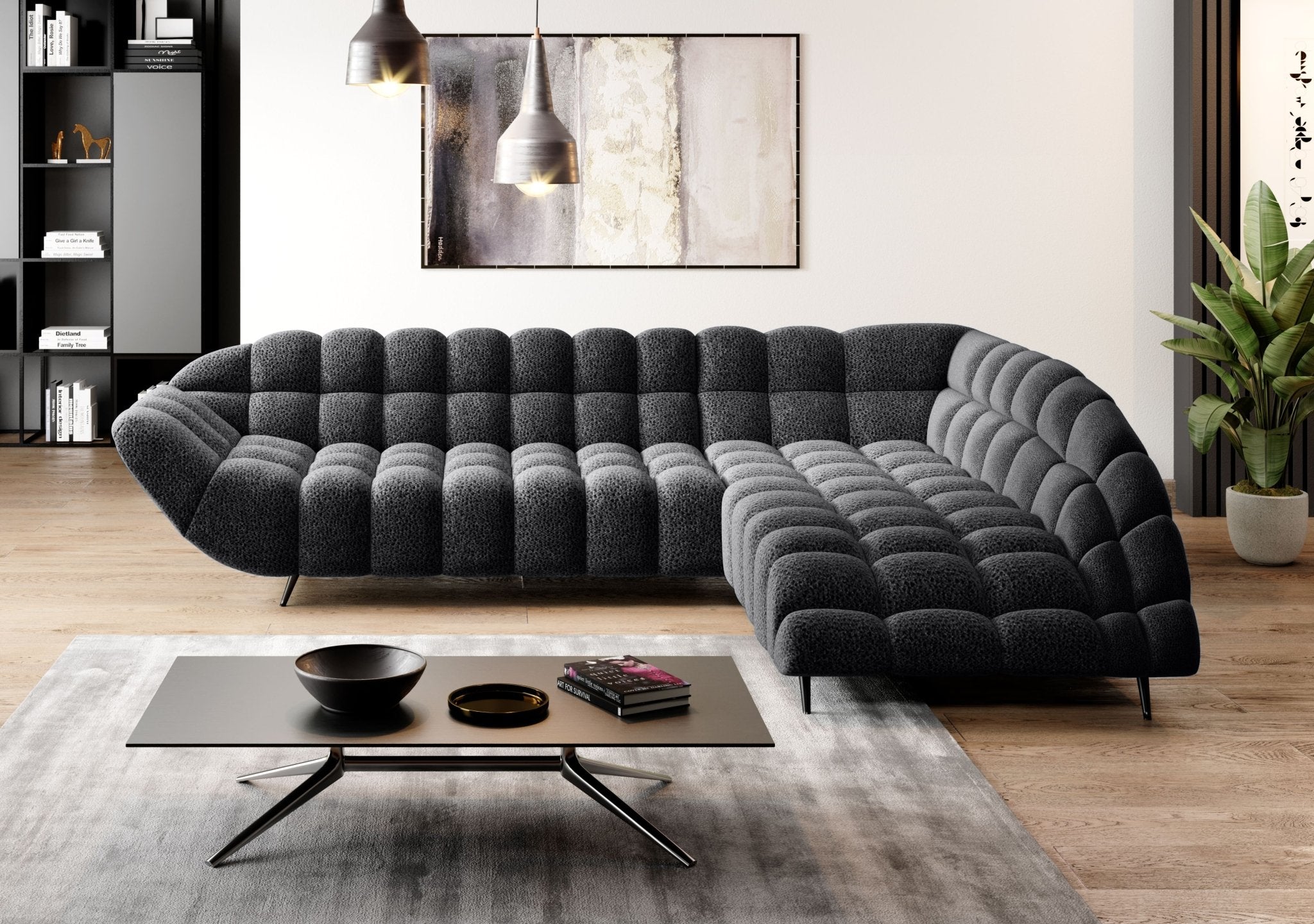 Design extravagant et moderne : La forme capitonnée et les courbes généreuses font de ce canapé un meuble unique et audacieux.