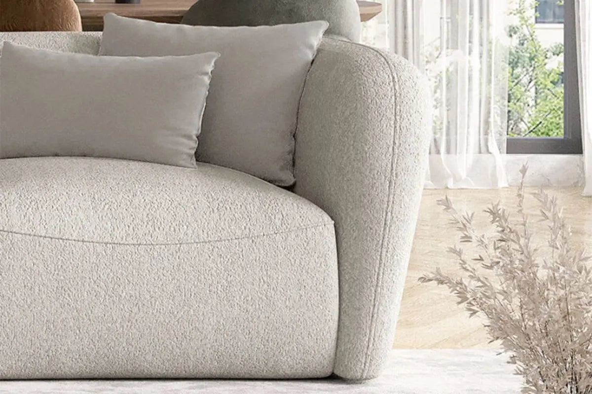 Avec son design "cloud" aux formes généreuses et son revêtement en tissu bouclé, le canapé CANDELO L est une invitation à la créativité et au confort absolu.