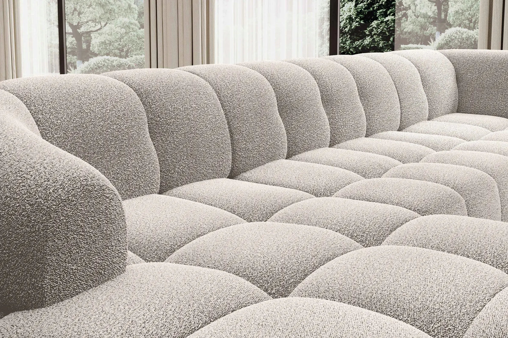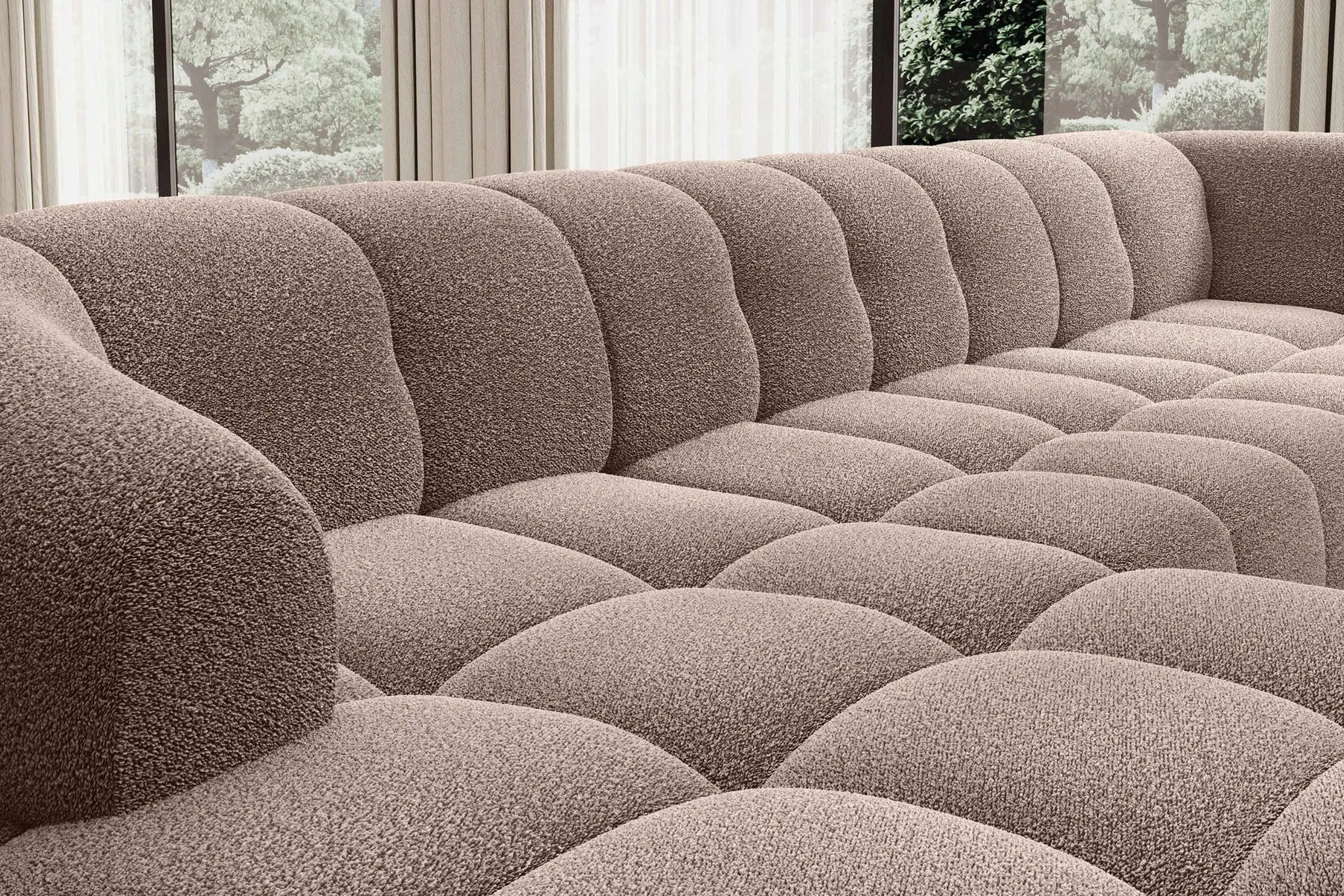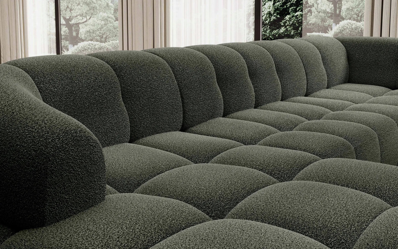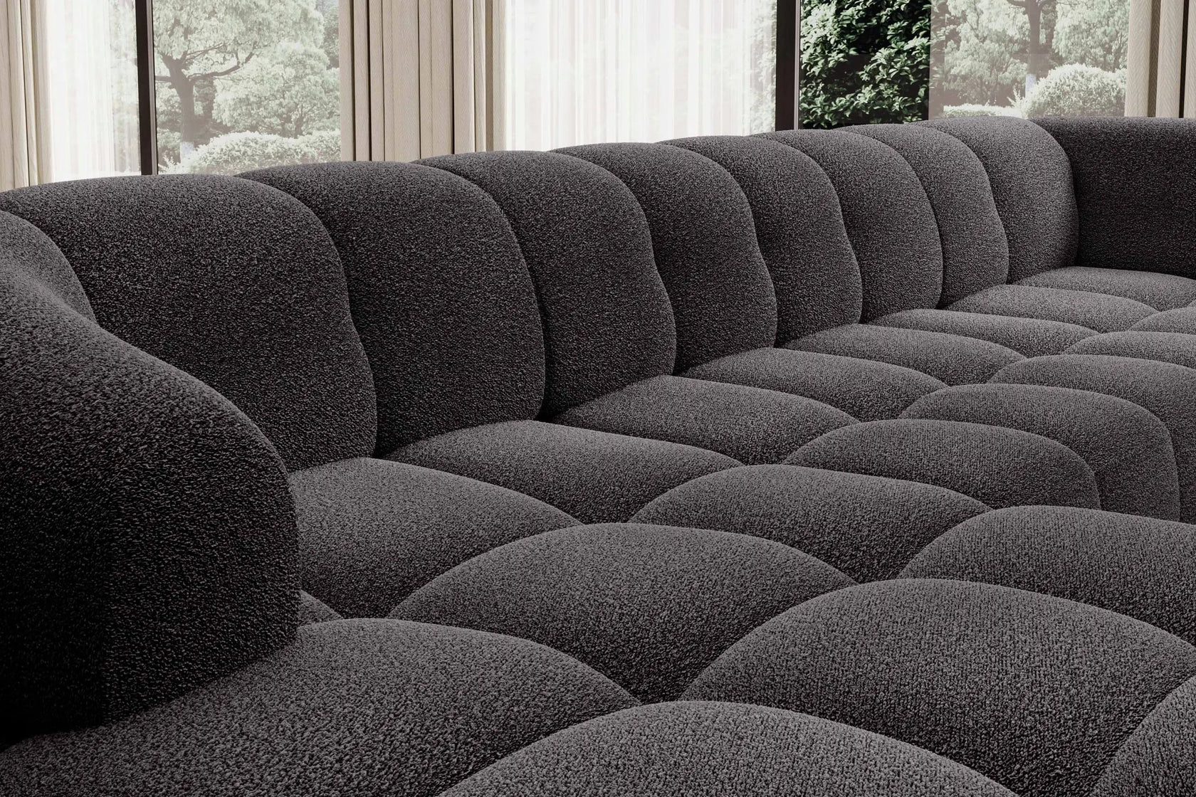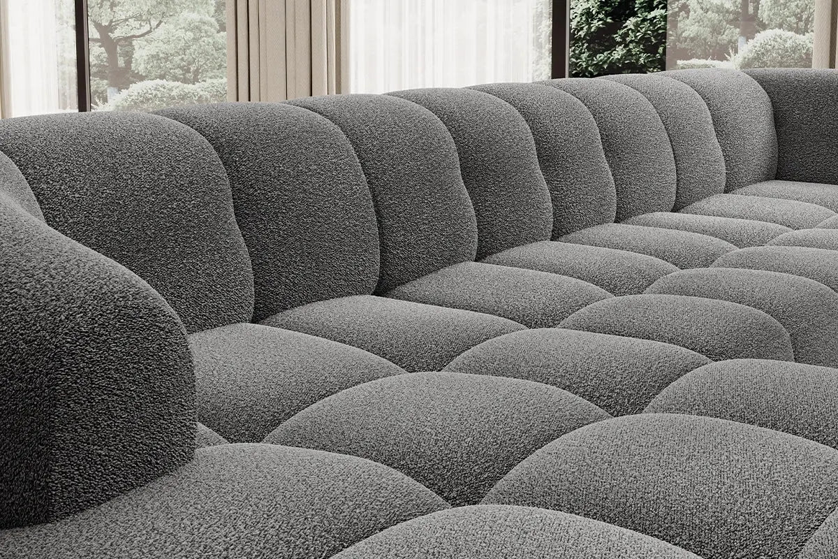 • Design Panoramique et Élégant : Avec sa forme en U, ses accoudoirs design et ses pieds hauts en métal noir, le canapé VELPA XL affiche une esthétique moderne et sophistiquée malgré ses dimensions généreuses.