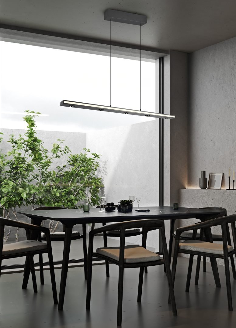 La suspension GRAHAM (353010132) est une pièce maîtresse d'éclairage intelligente et élégante. Fabriquée en Métal Noir Mat, sa conception linéaire et épurée intègre une technologie LED sophistiquée. Elle est parfaite pour illuminer de grandes tables de repas ou des comptoirs, offrant à la fois une lumière de travail fonctionnelle et une ambiance chaleureuse.