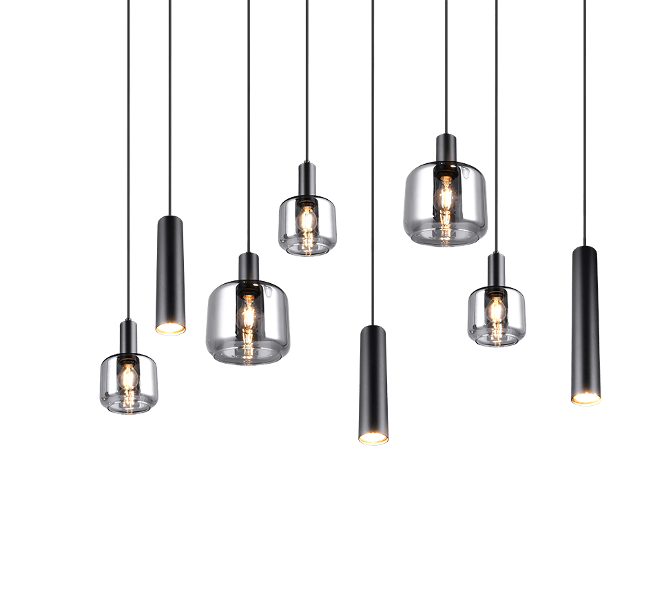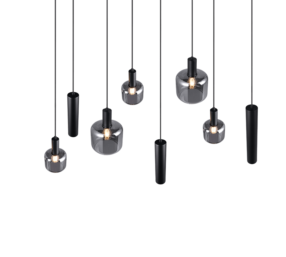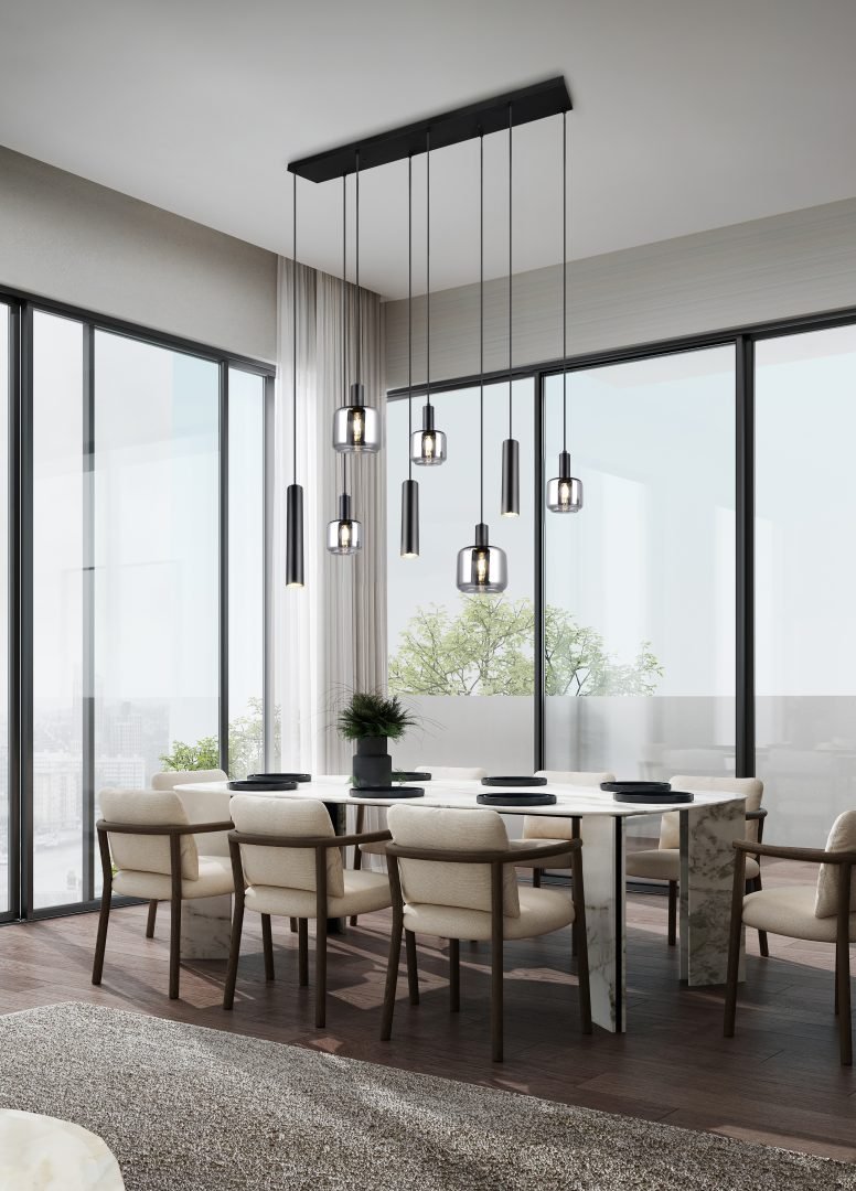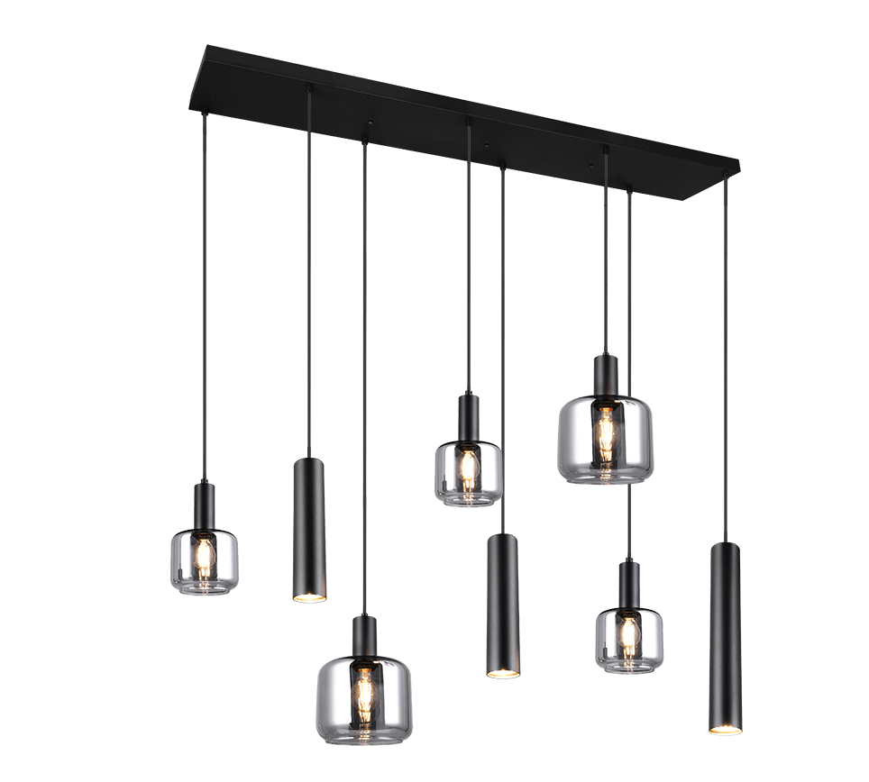 La suspension MATARO (364100832) est un luminaire à huit lumières au design moderne et élégant. Elle crée un point focal fascinant grâce à l'association harmonieuse de trois minces luminaires métalliques et de cinq éléments décoratifs en verre. Cette combinaison en Métal Noir Mat et Verre Chromé (avec un léger effet miroir) crée des reflets spéciaux et une brillance subtile qui rehaussent l'apparence de votre intérieur. C'est l'accroche-regard idéal au-dessus de n'importe quelle table de salle à manger.